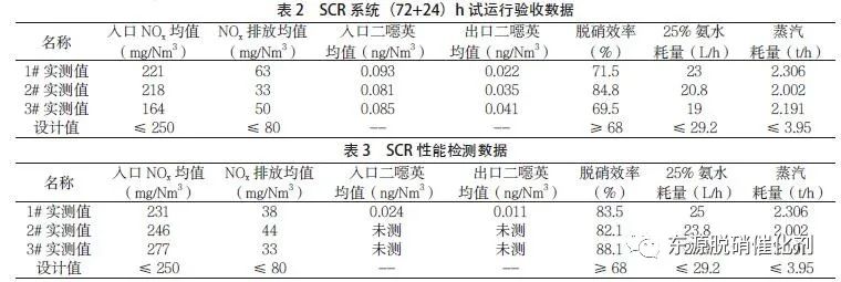在保證氨逃逸不超標(biāo)的情況下(≤ 3 mg/Nm3),SCR 的脫硝效率能夠超過80%,并且運(yùn)行穩(wěn)定可靠。SCR 脫硝選用合適的催化劑,具有協(xié)同脫除二噁英的作用,本項(xiàng)目協(xié)同脫除二噁英的效率超過50%。