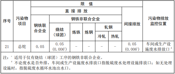 二、在“表 2 新建企業(yè)水污染物排放濃度限值及單位產(chǎn)品基準排水量”“表 3 水污染物特別排放限值”中,增加總鉈排放限值要求(單位:mg/L):