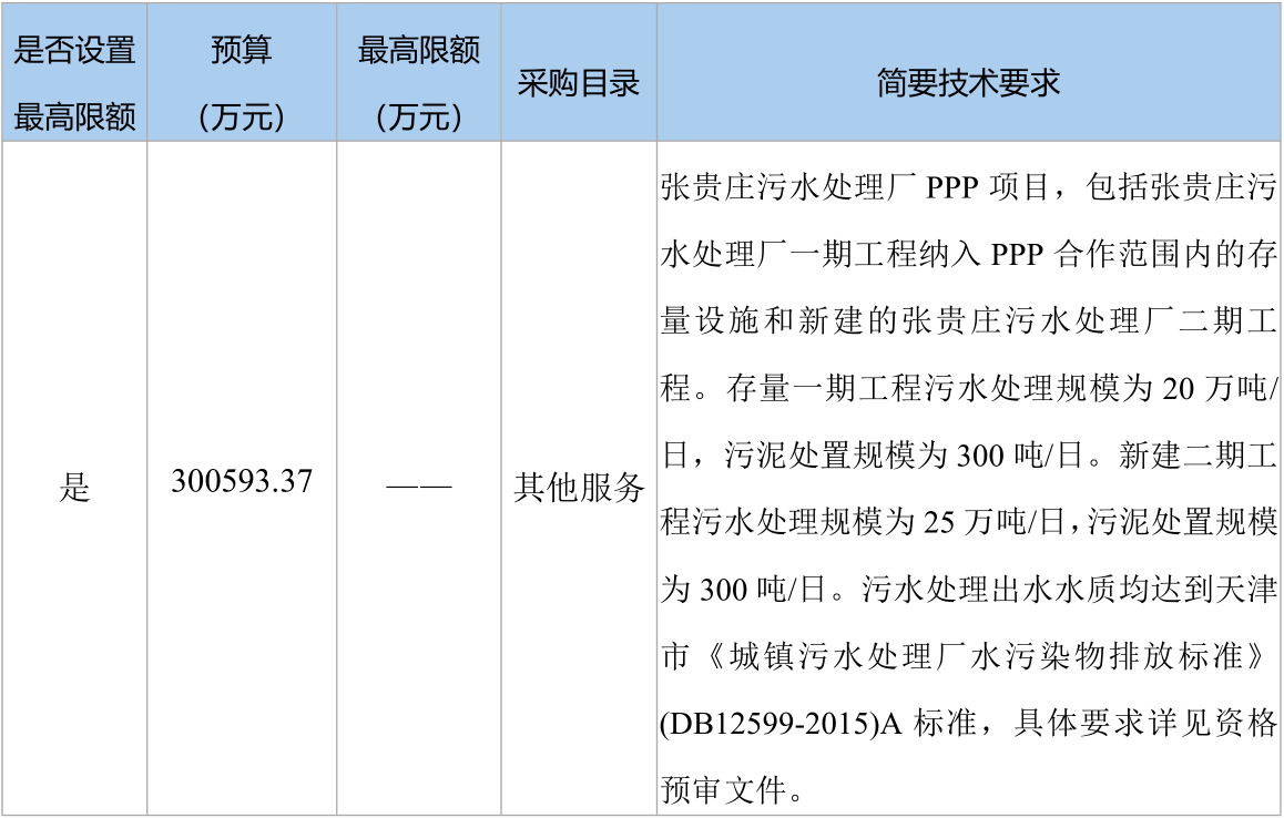 原標(biāo)題:天津市住房和城鄉(xiāng)建設(shè)委員會(huì) 天津市張貴莊污水處理廠PPP項(xiàng)目 (項(xiàng)目編號(hào):GXTC-A-2045009)公開(kāi)招標(biāo)資格預(yù)審公告