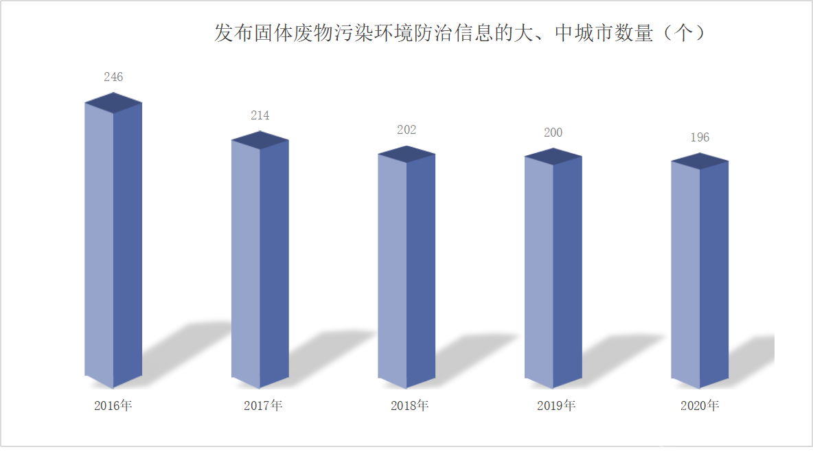 2、固體廢棄物信息化統(tǒng)計工作已經(jīng)初見成效,近年來200個左右的大、中城市固體廢物處置公報越來越準(zhǔn)確地反應(yīng)出我國固廢污染防治以及固體廢棄物處理處置工作的進程。