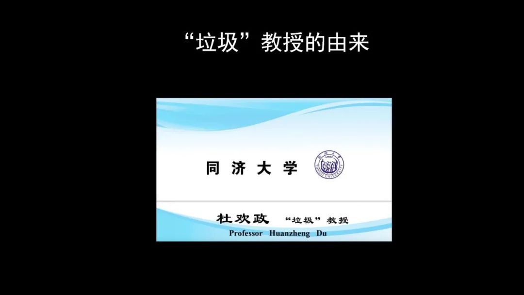 我來(lái)自同濟(jì)大學(xué),大家看我的名片上印的是:“垃圾”教授。大家覺(jué)得奇怪了,怎么教授還有垃圾教授、優(yōu)秀教授之分嗎?這里面實(shí)際上是有個(gè)故事的。