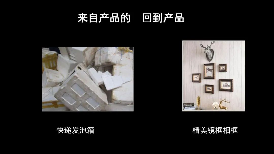 第二句話(huà)叫做:來(lái)自產(chǎn)品,要回到產(chǎn)品。你看我們從石油做成石油聚合物,做成發(fā)泡箱,我們把發(fā)泡箱按照物質(zhì)不滅定律,把它做成漂亮的鏡框、相框,繼續(xù)為大家服務(wù)。