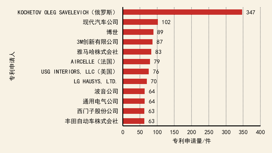 物理污染控制核心專利持有機(jī)構(gòu)分布