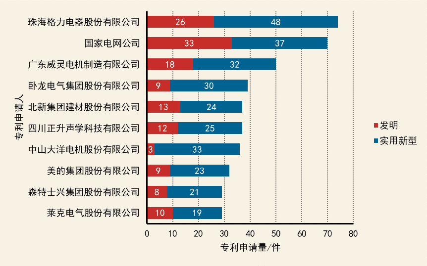 中國企業(yè)在該技術(shù)領(lǐng)域?qū)@暾?qǐng)以實(shí)用新型為主,大部分企業(yè)實(shí)用新型專利申請(qǐng)量占比60%以上,企業(yè)類型集中于電氣企業(yè),以機(jī)械噪聲控制居多。