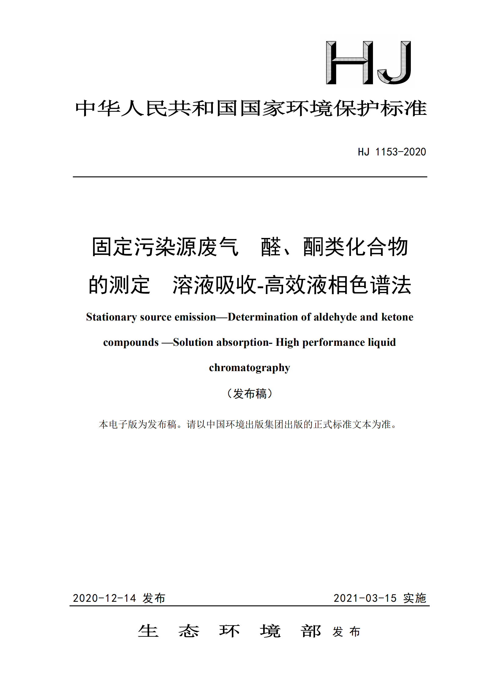 標準號:HJ 1153-2020