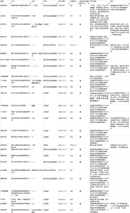 旗下的另一間企業(yè),淮北宇能環(huán)保能源有限公司(800噸處理量,兩臺循環(huán)流化床)已經(jīng)整體停運,相關(guān)垃圾處理業(yè)務(wù)也轉(zhuǎn)由該公司在此地遷址重建的新廠——淮北旺能環(huán)保能源有限公司,并已于2020年正式投運,新廠處理量1500噸,兩臺750噸爐排爐。錦江環(huán)境:旗下昆明鑫興澤環(huán)境資源產(chǎn)業(yè)有限公司,共有三臺爐,處理量為1200噸,已于2020年06月02日不再報送數(shù)據(jù),并已在生態(tài)環(huán)境部生活垃圾焚燒發(fā)電廠自動監(jiān)測信息公示平臺,進(jìn)行了主動公示。據(jù)悉,該項目屬于應(yīng)政府要求整體異地搬遷、拆舊換新的項目,且新廠已經(jīng)投運,新項目的焚燒爐為三臺750噸爐排爐。不過,研究團(tuán)隊尚未在公示平臺查詢到相關(guān)信息,估計還是處于試運行狀態(tài),相關(guān)煙氣、爐溫、工況等數(shù)據(jù)尚未上網(wǎng)。中國天楹:旗下啟東和深圳項目,目前均整體停運,并已在生態(tài)環(huán)境部生活垃圾焚燒發(fā)電廠自動監(jiān)測信息公示平臺,進(jìn)行了主動公示。據(jù)悉,兩個項目都是并購項目,前期設(shè)備和環(huán)保設(shè)施欠債較多,需要進(jìn)行就地改造,整體拆除原有設(shè)備,原址新建焚燒爐臺套產(chǎn)線,基本算是原址建造新廠,且今年內(nèi)都將陸續(xù)投產(chǎn)。不過,研究團(tuán)隊尚未在公示平臺查詢到相關(guān)信息,估計還是處于試運行狀態(tài),相關(guān)煙氣、爐溫、工況等數(shù)據(jù)尚未上網(wǎng)。偉明環(huán)保:旗下溫州甌海項目,停運了一臺160噸的爐排爐,該爐于2000年投產(chǎn),至今已運行20年。綠色動力:旗下海寧綠色動力再生能源有限公司(處理量六百噸,兩臺09年投運爐排爐)已經(jīng)停運。同時,在海寧當(dāng)?shù)亓肀傩轮罚陆隧椖亢幘G動海云環(huán)保能源有限公司,已于今年六月投入運營,新項目處理量為1500噸,兩臺750噸爐排爐。相關(guān)信息已在生態(tài)環(huán)境部生活垃圾焚燒發(fā)電廠自動監(jiān)測信息公示平臺,進(jìn)行了主動公示。