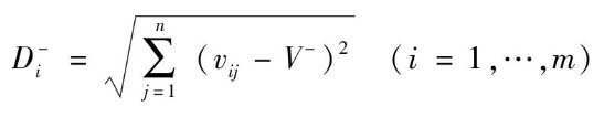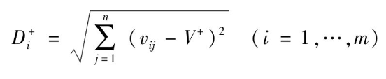 根據(jù)V,選擇指標(biāo)得分最多的為正理想解V+,得分少的為負(fù)理想解V-,然后計(jì)算方案和正負(fù)理想解的距離D。