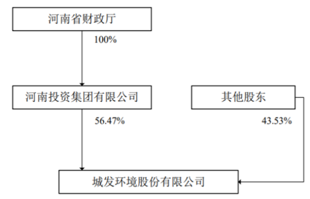 城發(fā)環(huán)境第一大股東為河南投資集團(tuán)有限公司,持股56.47%,該股東為河南省財(cái)政廳100%控股。