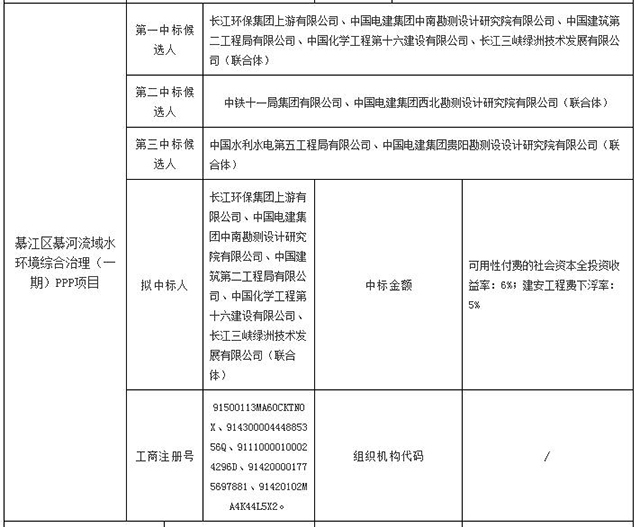 近日,長江環(huán)保集團上游有限公司、中國電建集團中南勘測設(shè)計研究院有限公司、中國建筑第二工程局有限公司、中國化學(xué)工程第十六建設(shè)有限公司、長江三峽綠洲技術(shù)發(fā)展有限公司聯(lián)合體中標重慶市綦江區(qū)綦河流域水環(huán)境綜合治理(一期)PPP項目。投標報價為可用性付費的社會資本全投資收益率6%,建安工程費下浮率5%。