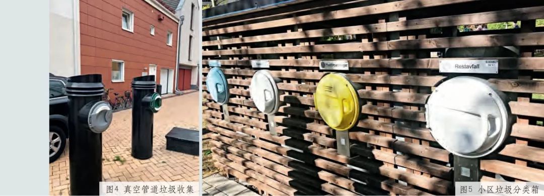 這類(lèi)垃圾袋在超市、便利店、回收中心隨處可取。此外,管理部門(mén)在社區(qū)設(shè)有回收站,規(guī)模較大的區(qū)域設(shè)有回收中心,用于回收大件廢物?;厥罩行倪€安排有咨詢?nèi)藛T,引導(dǎo)前來(lái)丟棄廢物的市民按分類(lèi)處置廢物。在哈馬碧和皇家海港新區(qū)等一些新建的社區(qū),已經(jīng)使用了真空管道等先進(jìn)的垃圾分類(lèi)收集系統(tǒng)(圖 4)。