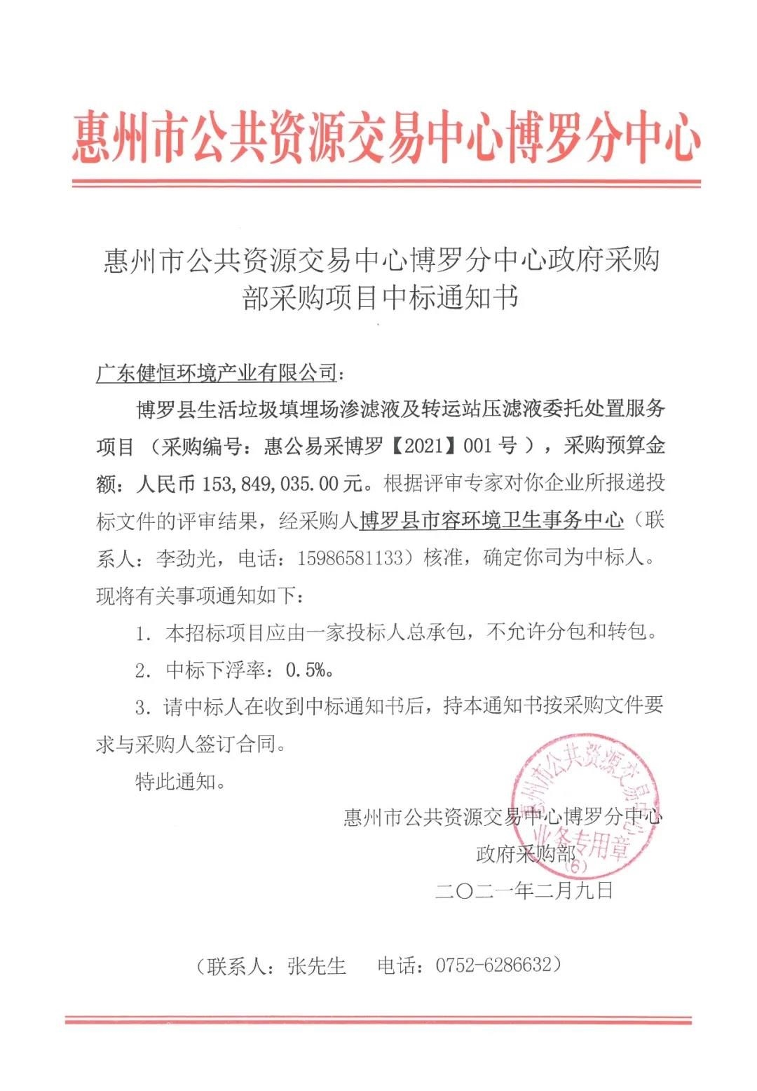 新春開門紅,牛年迎喜氣!健恒環(huán)境在2021年強勢開局,中標博羅縣生活垃圾填埋場滲濾液及轉(zhuǎn)運站壓濾液委托處置服務(wù)項目。該項目是健恒環(huán)境成立以來中標金額最大的項目。