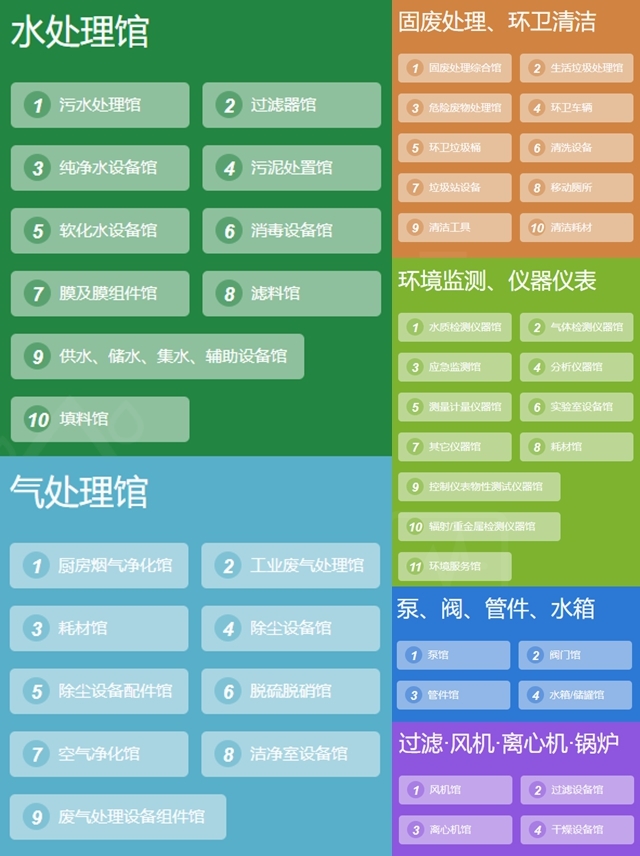水處理館、氣處理館、固廢處理/環(huán)衛(wèi)清潔、環(huán)境監(jiān)測(cè)/儀器儀表、泵/閥/管件/水箱、過(guò)濾/風(fēng)機(jī)/離心機(jī)/鍋爐6大展館,全面專業(yè)的展區(qū)分類,更加清晰、一目了然,客戶能快速找到目標(biāo)產(chǎn)品或企業(yè),便于供需雙方的對(duì)接溝通。