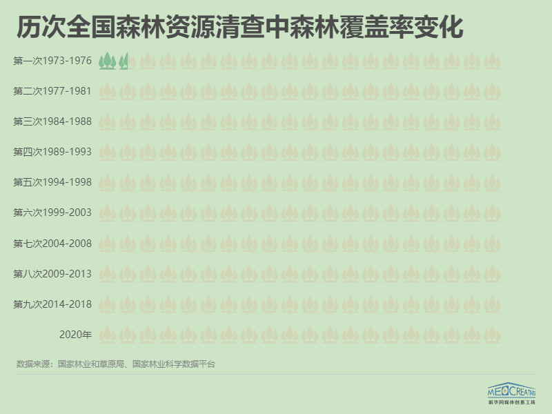 從1973年到2020年,47年時間里,我國的森林覆蓋率從12.7%增長到23.04%,幾乎增長了一倍。