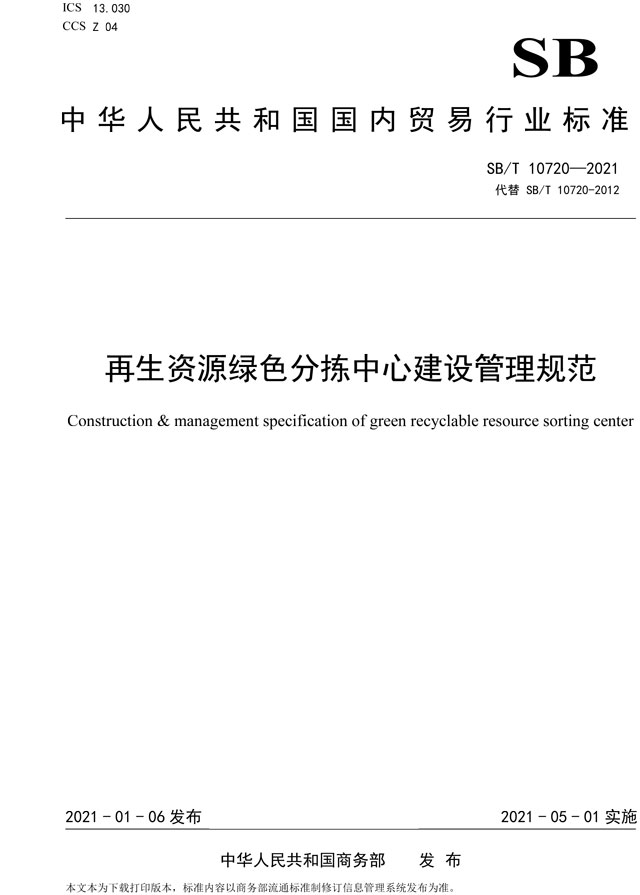 原標(biāo)題:《再生資源綠色分揀中心建設(shè)管理規(guī)范》(SB/T 10720-2021)行業(yè)標(biāo)準(zhǔn)解讀