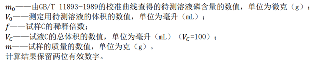 稱取 10 g 試樣,精確至 0.01 g,加水轉移至 100 mL 容量瓶中,用水定容至刻度,搖勻,此為試液 C。移取適量試液 A 于 100 mL 容量瓶中,采用逐級稀釋法,用水稀釋至刻度,搖勻,使待測溶液中總磷含量范圍在 0.01 mg/L——0.6 mg/L。