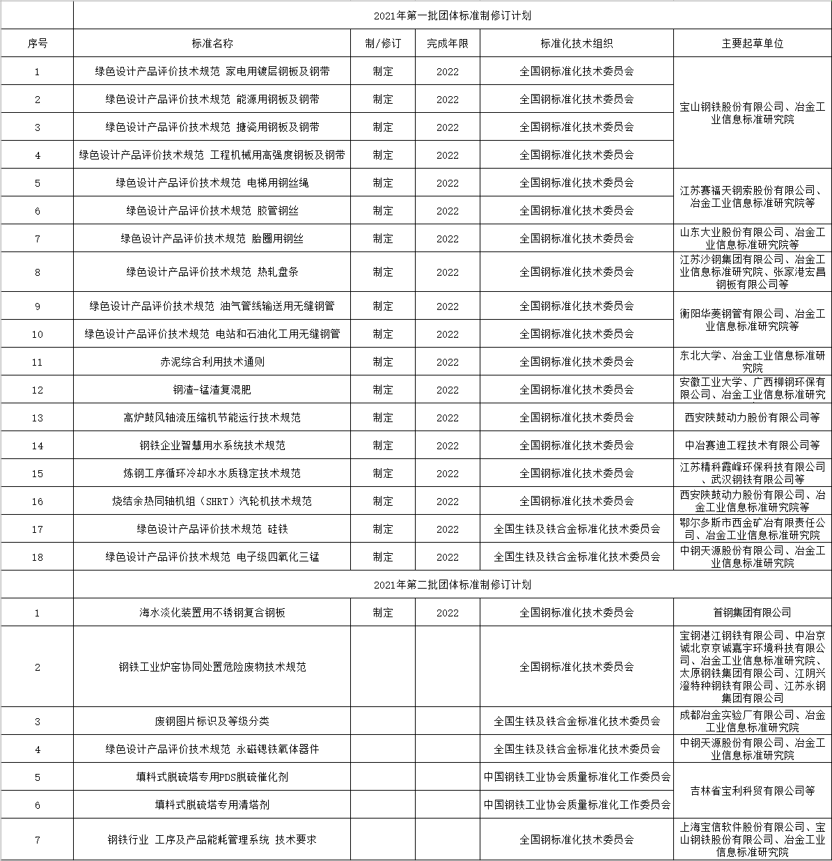 2021年以來,中國鋼鐵工業(yè)協(xié)會已經(jīng)相繼下達了兩批團體標準制修訂計劃,包括: