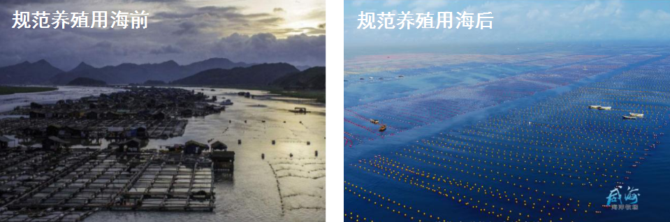 經(jīng)過長(zhǎng)期探索,威海市逐步形成了以《海岸帶保護(hù)條例》為保障,以《養(yǎng)殖水域?yàn)┩恳?guī)劃》和《海岸帶保護(hù)規(guī)劃》為引領(lǐng),以“灣長(zhǎng)制”、信用分級(jí)分類管理、船舶污染物轉(zhuǎn)運(yùn)聯(lián)單等制度為抓手的“海洋廢棄物”管控制度體系,為推進(jìn)海洋綠色發(fā)展奠定了堅(jiān)實(shí)制度基礎(chǔ)。圖 5 威海市規(guī)范養(yǎng)殖用海前后對(duì)比圖