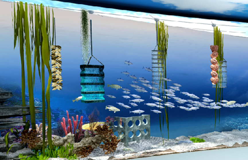 多營(yíng)養(yǎng)層次綜合養(yǎng)殖模式?!岸酄I(yíng)養(yǎng)層次綜合養(yǎng)殖模式”是指在同一養(yǎng)殖區(qū)域內(nèi)合理搭配不同營(yíng)養(yǎng)層級(jí)、養(yǎng)殖生態(tài)位互補(bǔ)的動(dòng)植物,實(shí)現(xiàn)水質(zhì)調(diào)控、營(yíng)養(yǎng)物質(zhì)循環(huán)利用、生態(tài)防病及質(zhì)量安全控制,在提高養(yǎng)殖效益的同時(shí)減少養(yǎng)殖廢物排放。威海市尋山集團(tuán)與水科院黃海所合作,在桑溝灣海域構(gòu)建“721模式”,即上層養(yǎng)殖海帶,占單位養(yǎng)殖面積的70%;中層養(yǎng)殖貝類、魚類,占單位養(yǎng)殖面積的20%;底層養(yǎng)殖鮑魚、海參,占位養(yǎng)殖面積的10%。該模式與傳統(tǒng)單一養(yǎng)殖模式相比,年產(chǎn)出增加30%,固碳量11萬噸。桑溝灣多營(yíng)養(yǎng)層級(jí)養(yǎng)殖模式累計(jì)吸引了全世界30多個(gè)國(guó)家和地區(qū)的專家學(xué)者前來學(xué)習(xí)考察,成為綠色養(yǎng)殖樣板。圖 6 多營(yíng)養(yǎng)層次綜合養(yǎng)殖模式示意圖表 1 立體生態(tài)養(yǎng)殖每畝產(chǎn)量及收益情況對(duì)比表注:貝類及底播增殖品種養(yǎng)殖周期為2-2.5年工業(yè)化循環(huán)水養(yǎng)殖技術(shù)模式。采用標(biāo)準(zhǔn)化、模塊化、工業(yè)化循環(huán)水養(yǎng)殖技術(shù),通過水質(zhì)測(cè)控、糞便收集、水體凈化、恒溫供氧、魚菜共生和智慧漁業(yè)等功能模塊,實(shí)現(xiàn)資源高效利用、循環(huán)用水、環(huán)保節(jié)能和風(fēng)險(xiǎn)控制。該模式養(yǎng)殖全程在相對(duì)封閉的養(yǎng)殖池內(nèi)完成,可實(shí)現(xiàn)水資源循環(huán)利用、飼料精準(zhǔn)投喂、污水與廢物近乎零排放,單位水體產(chǎn)出約是普通池塘養(yǎng)殖的20倍,單位產(chǎn)量耗能僅為普通池塘養(yǎng)殖的1/3。