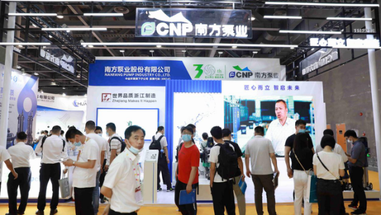 ■進(jìn)入展館映入眼簾的是南方泵業(yè),展示著SS系列水泵,這款產(chǎn)品可滿足不同流量和壓力下的城市供水要求。
