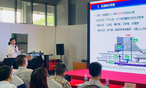 ◆廣東省建筑設(shè)計(jì)研究有限公司院給排水副總工程師黎潔以《廣東省三館合一項(xiàng)目給排水設(shè)計(jì)及技術(shù)難點(diǎn)》為題,發(fā)表主旨演講。