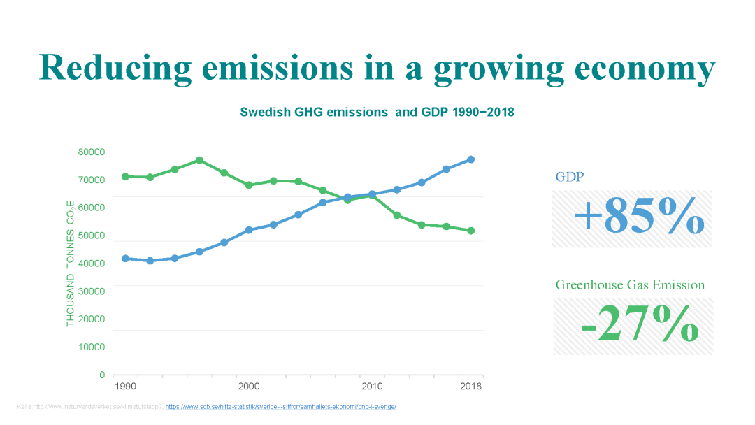 瑞典是提出來在2045年達到碳中和,中國是2060年,在這方面我們也是接下來一個很重要的工作重點,我們目前也在跟瑞典駐華大使館做很多的交流,接下來可能會有很多這方面的戰(zhàn)略性的合作。這個圖片是想跟大家聊一下碳達峰、碳中和和經(jīng)濟的關系,有很多國家在比較靠前的時間就實現(xiàn)了碳達峰,有兩種原因。一種原因就是因為經(jīng)濟沒有很好的發(fā)展,整體排放量不會增加。另一種經(jīng)濟還是快速發(fā)展,但是它的碳排放已經(jīng)脫鉤了,是一個下降的趨勢,瑞典就是這種的一個代表。比如我們可以看到,它在九幾年的時候,綠線已經(jīng)達到了碳達峰,后續(xù)一直在降低。到2045年會達到中和,會到0左右。但是它的GDP一直是快速的增加,這個對碳中和是更加有意義的一種方向。