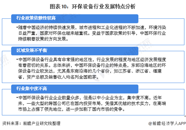 環(huán)保設備行業(yè)的發(fā)展共有三大特點,分別是政策依賴性較高、區(qū)域發(fā)展不平衡及市場分散,競爭激烈。具體分析如下: