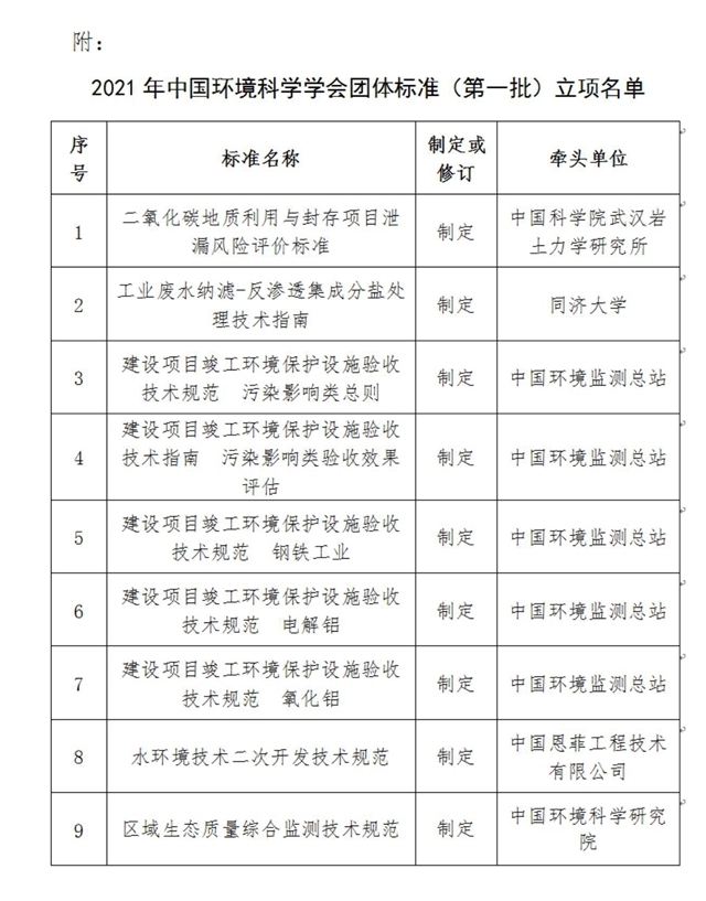 附件:2021年中國環(huán)境科學(xué)學(xué)會團(tuán)體標(biāo)準(zhǔn)(第二批)立項名單
