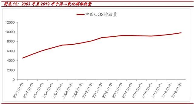 另一方面,在我國的碳排放格局中,能源活動,即化石燃料的燃燒以及 化石燃料開采時的溫室氣體排碳占比為 85.4%;工業(yè)過程,即工業(yè)生產(chǎn) 加工中產(chǎn)生的溫室企業(yè)排碳比重為 15.4%;此外,農(nóng)林業(yè)生產(chǎn)活動的綠 植吸收對排碳貢獻為-0.8%。