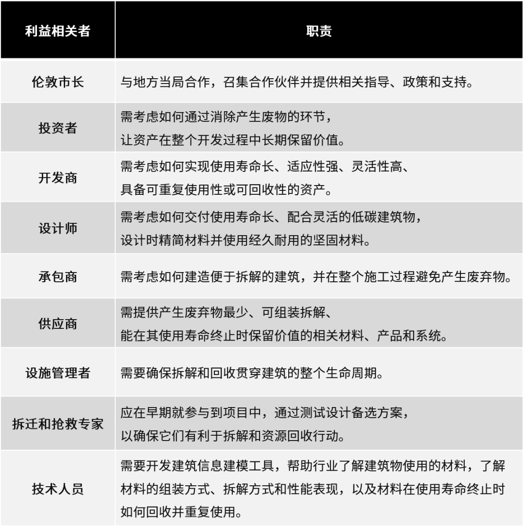 為優(yōu)先解決倫敦的主要廢棄物問題,該《先導(dǎo)手冊(cè)》主要面向建成環(huán)境行業(yè)相關(guān)人士,包括參與建筑、基礎(chǔ)設(shè)施等實(shí)體建設(shè)工作的業(yè)主、設(shè)計(jì)團(tuán)隊(duì)、開發(fā)商、建造團(tuán)隊(duì)等利益相關(guān)者,闡釋循環(huán)經(jīng)濟(jì)的價(jià)值、商機(jī)與實(shí)施策略。