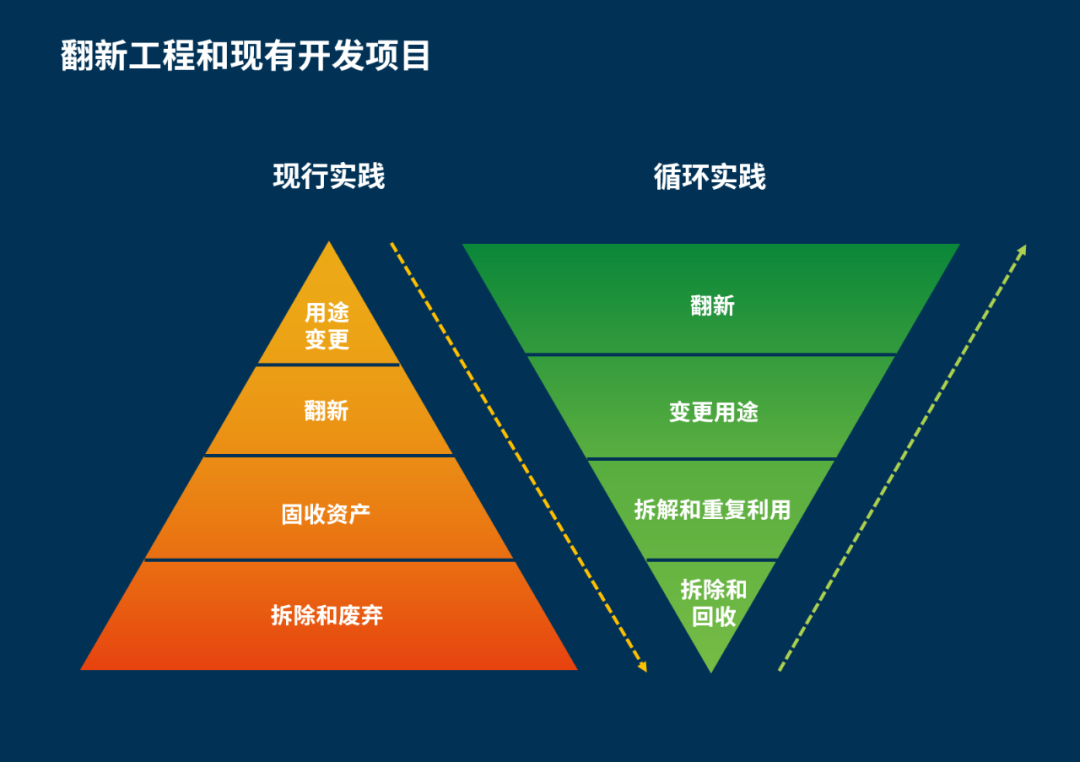 循環(huán)發(fā)展的途徑有很多,需要設(shè)計(jì)、項(xiàng)目管理、成本顧問等專業(yè)團(tuán)隊(duì)一同合作確認(rèn)項(xiàng)目方案,且越早讓多方參與到前期設(shè)計(jì)階段會(huì)越利于最優(yōu)解決方案的產(chǎn)出。