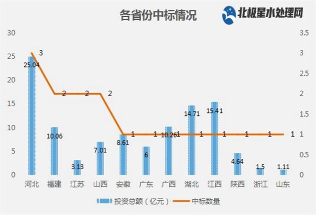 從地區(qū)來看,17大項目主要分布在河北、江西、湖北、廣西、福建等省份,河北憑借20億+的河北省廊坊市霸州市全市污水處理設(shè)施及配套管網(wǎng)工程全覆蓋項目(北部區(qū)域)項目再次拿下TOP1的位置,2月,河北已經(jīng)借助30億的北運河香河段綜合整治清分工程PPP項目問鼎。