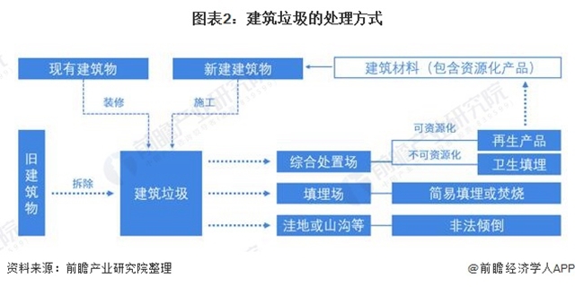 目前我國(guó)建筑垃圾處理主要分為兩種方式,一種是建筑垃圾運(yùn)往當(dāng)?shù)亟ㄖ{場(chǎng),再進(jìn)行資源化、填埋或者焚燒處理;第二種是由建筑垃圾資源化企業(yè)向工程承包商對(duì)建筑垃圾進(jìn)行采購(gòu),運(yùn)往相關(guān)回收企業(yè)進(jìn)行資源化生產(chǎn)。