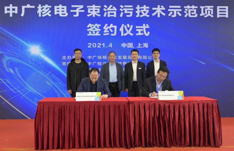 本屆環(huán)博會,中廣核技攜手多個合作伙伴,共同推動電子束治污技術(shù)向更深更廣的治理領域拓展。20日當天,達勝科技與綿陽中科綿投環(huán)境服務有限公司(簡稱“中科綿投”)、河南省中州環(huán)境節(jié)能科技有限公司(簡稱“中州環(huán)境”)、山東海岸線環(huán)??萍加邢薰?簡稱“山東海岸線”)分別簽署戰(zhàn)略合作協(xié)議,共同開創(chuàng)電子束治污新應用領域。