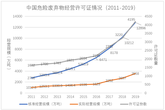 危險廢棄物處理核準經(jīng)營規(guī)模遠超實際經(jīng)營規(guī)模,許可證容量錯配問題鮮有改善。