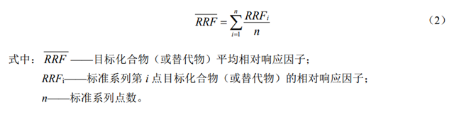目標化合物或替代物的平均相對響應因子,按照公式(2)進行計算: