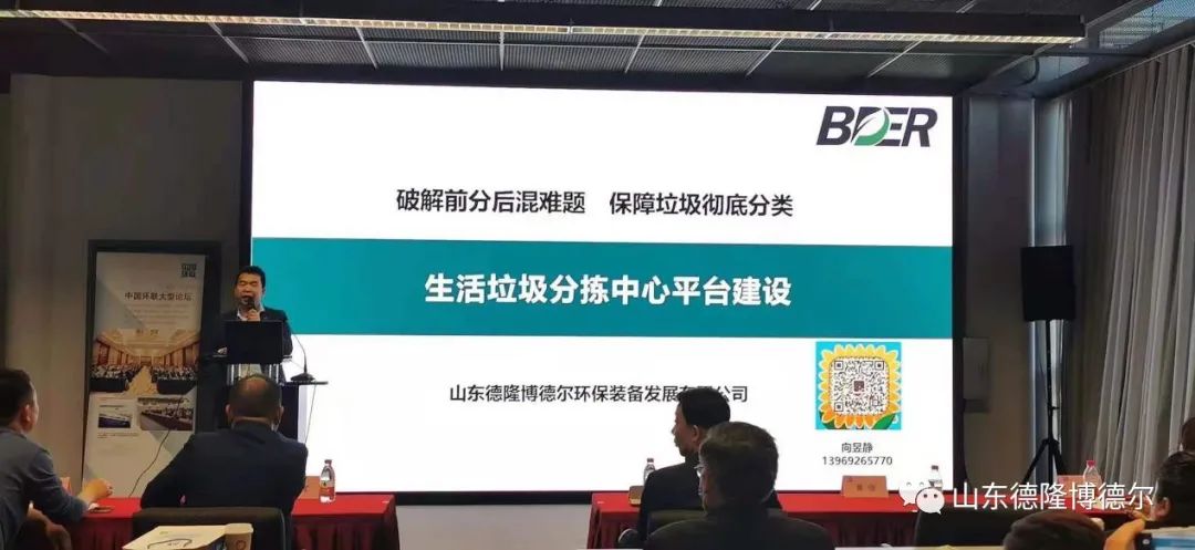 環(huán)博會期間,由中國環(huán)聯(lián)舉辦的固廢技術論壇在上海錦江酒店隆重召開,山東德隆博德爾環(huán)保裝備發(fā)展有限公司做為中國環(huán)聯(lián)副理事長單位應邀參會。會上由上海博德爾集團副總裁李偉從多角度分析和論述了當前疫情下的垃圾處理形勢,以及未來一段時間內(nèi)垃圾處理行業(yè)的技術發(fā)展和要點。同時在中國環(huán)聯(lián)舉辦的專業(yè)沙龍上,由公司常務副總經(jīng)理向昱靜發(fā)表了生活垃圾分揀中心平臺建設的專題演講。