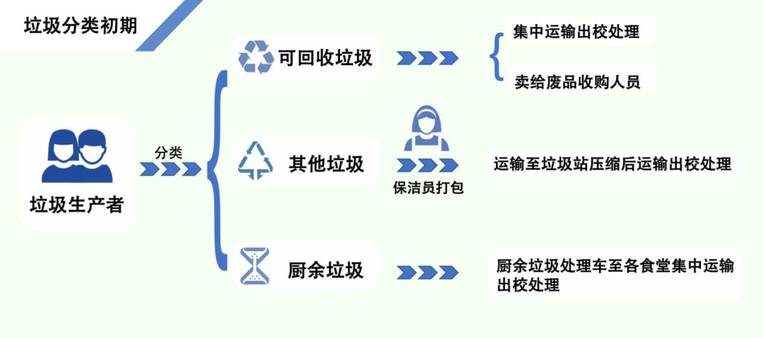 宿舍樓棟內(nèi)的垃圾分類(lèi)方式已發(fā)生變化,保潔員的工作從打包延展至分類(lèi),他們需對(duì)學(xué)生投放的垃圾再次開(kāi)包分揀。3棟的代同學(xué)并不知曉垃圾分類(lèi)方式的變化,他以為是宿舍的客觀條件限制加上部分學(xué)生分類(lèi)意識(shí)較差的主觀原因,共同自下而上地導(dǎo)致了“二次分類(lèi)”。2棟的劉同學(xué)表示,看到宿舍保潔員還要將自己已經(jīng)分好類(lèi)的垃圾再分揀一遍,十分疑惑。