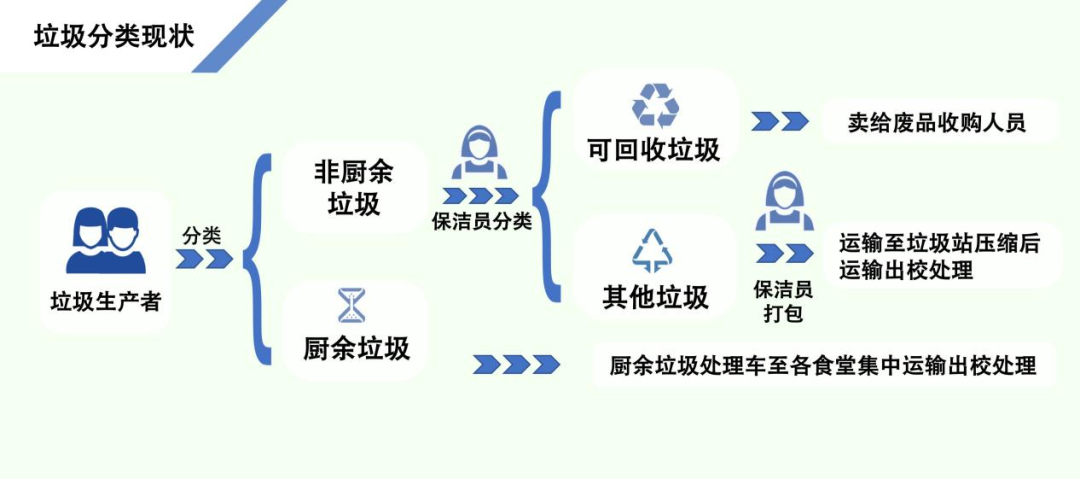 物業(yè)公司的張美婷分管一組團(tuán)的宿舍樓棟工作,她在之前的巡視中觀察到很多垃圾未經(jīng)分類(lèi)就扔在了桶里。她表示,宿舍樓棟垃圾在保潔員下班后確實(shí)存在堆積情況,但在工作時(shí)間內(nèi)能夠保證垃圾的清運(yùn),如果同學(xué)們丟棄的垃圾沒(méi)有分好類(lèi)便會(huì)增加保潔員負(fù)擔(dān)。