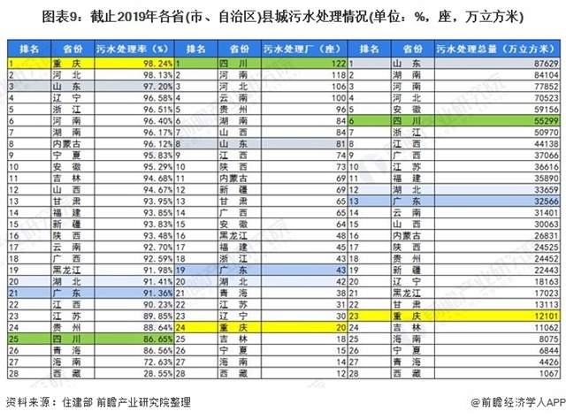 ——重慶縣城污水處理率最高,四川縣城污水處理廠最多