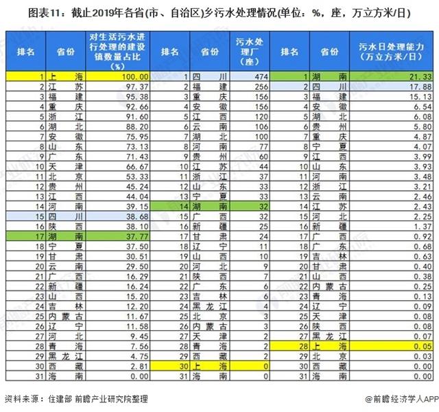 ——四川農(nóng)村污水處理廠數(shù)量最多,海南并未有鄉(xiāng)進(jìn)行生活污水處理