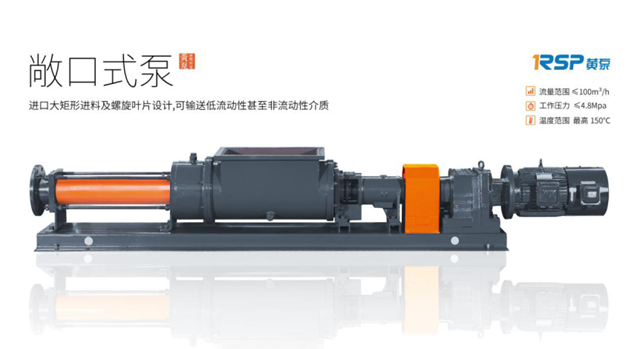 第二款黃泵敞口式單螺桿泵進口腔體為矩形進料斗設(shè)計,內(nèi)裝有進料螺旋葉片,可輸送高粘度、流動性差或非流動性介質(zhì),如脫水污泥等,工作壓力2.4Mpa,流量50m³/h。產(chǎn)品特點為以下幾點。