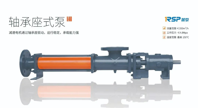 其中第一款軸承座式泵通過軸承座驅(qū)動,運行穩(wěn)定,承載能力強,剛性好,維護方便。適合輸送有固體顆?;蚶w維,流動性較好或一般的介質(zhì)。最大流量可輸送200m³/h,工作壓力2.4Mpa。