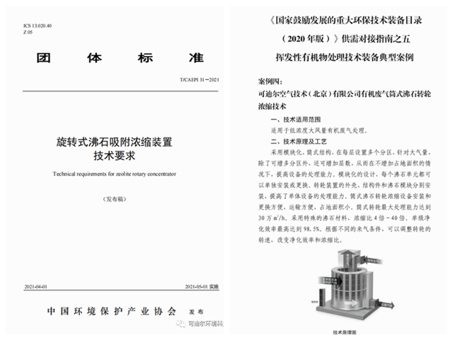由中國(guó)環(huán)境保護(hù)產(chǎn)業(yè)協(xié)會(huì)組織制訂,可迪爾空氣技術(shù)(北京)有限公司起草參編的《旋轉(zhuǎn)式沸石吸附濃縮裝置技術(shù)要求》(T/CAEPI 31—2021),于2021年4月13日由中國(guó)環(huán)境保護(hù)產(chǎn)業(yè)協(xié)會(huì)批準(zhǔn)并發(fā)布。此標(biāo)準(zhǔn)為首次發(fā)布,將于2021年5月1日起實(shí)施。