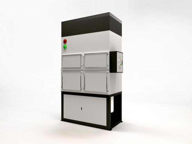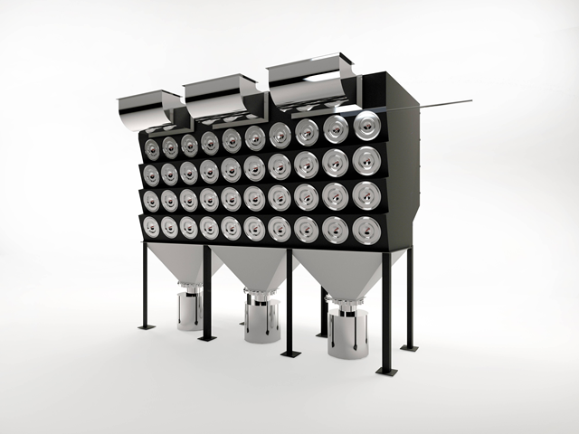 另一款集中式濾筒焊煙除塵設備在此次環(huán)博會上同樣備受關注,吸引眾多參展觀眾前來參觀。這款集中式濾筒焊煙除塵設備可在離心風機的負壓作用下,粉塵從排氣口進入后,通過風管集中后進入粉塵凈化器,在擋風板的作用下,氣流向上流動,流速降低,部分大顆粒粉塵由于慣性力的作用被分離出來落入灰斗。細粉塵進入凈化室,當通過專用粉塵防靜電聚脂纖維濾芯時,粉塵被阻留在濾筒的外表面,凈化后的氣體經(jīng)濾筒口進入上箱體,從風機出風口排出。
