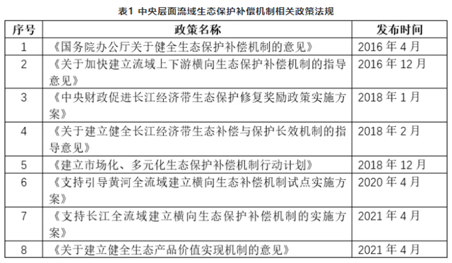 一、流域生態(tài)保護補償機制構(gòu)建政策進展