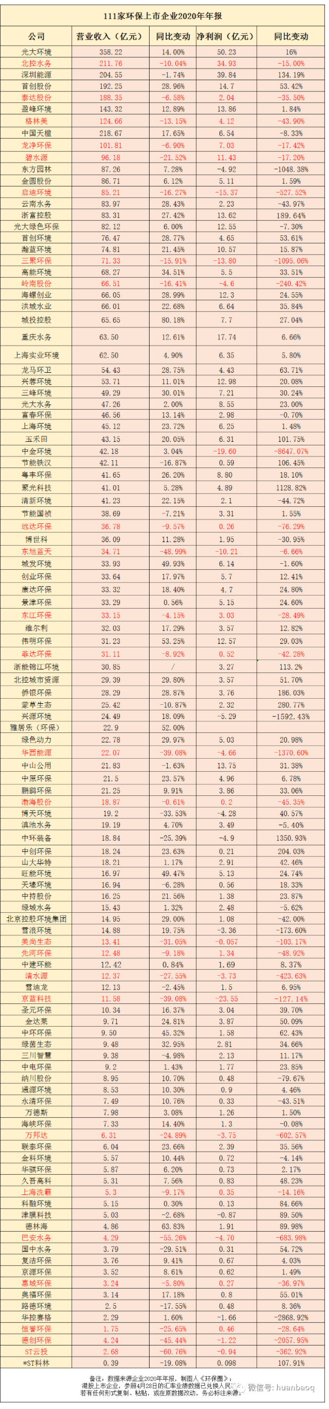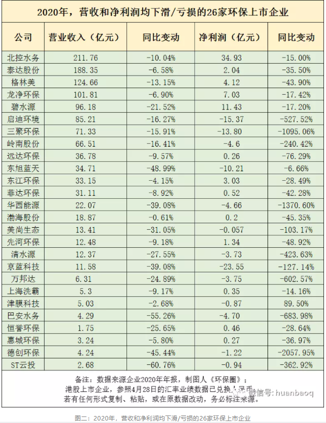 111家上市環(huán)企2020年報(bào):北控/啟迪/碧水源營收凈利“雙降”