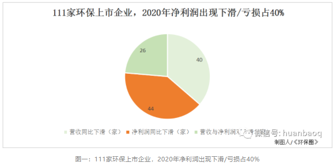 111家環(huán)保上市企業(yè),2020年?duì)I收實(shí)現(xiàn)正向增長有71家,約占64%,這一比例相較于2019年下降了16%,遠(yuǎn)低于預(yù)期,再次印證了去年疫情對我國環(huán)保產(chǎn)業(yè)沖擊。