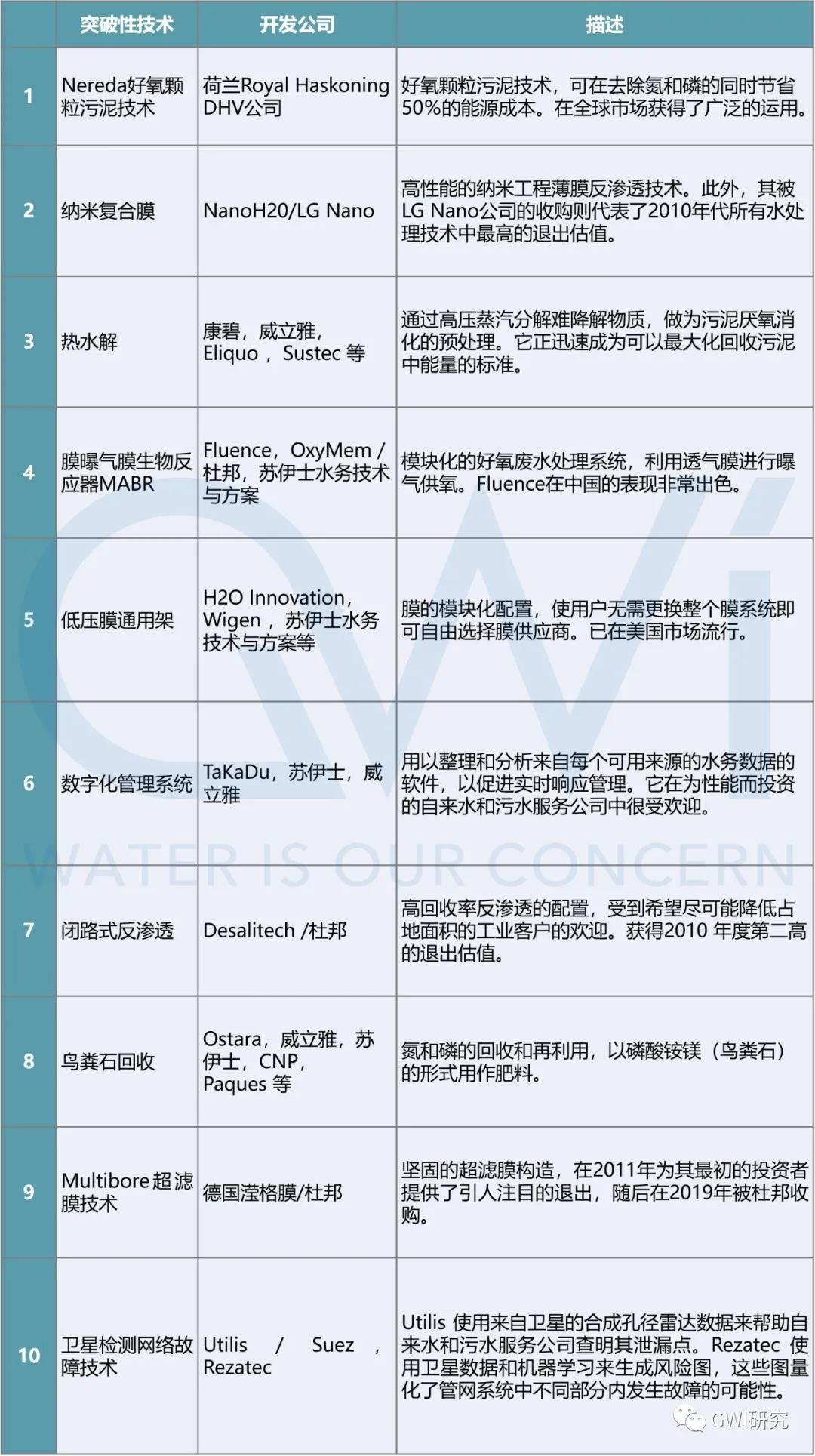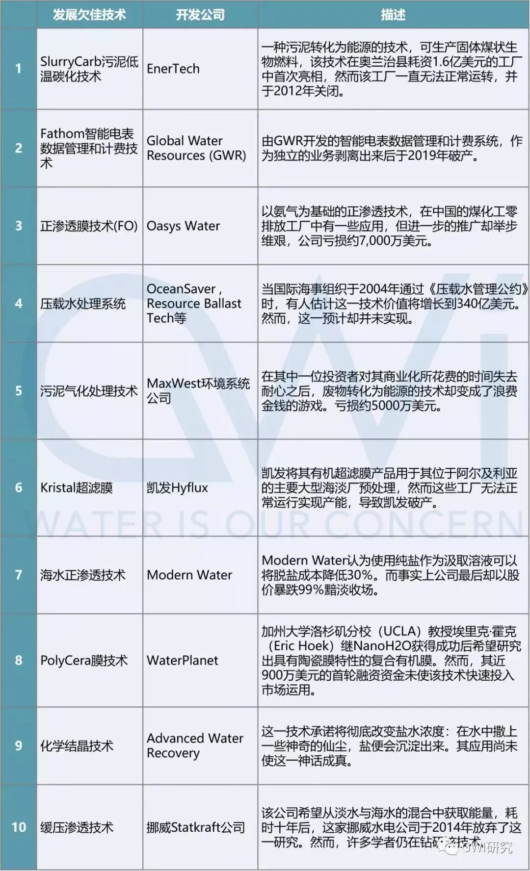 2020年2月,GWI發(fā)布過一份“過去十年全球水務(wù)技術(shù)公司的突破與隕落TOP10榜單”,但遺憾的是,無論是突破的技術(shù),還是隕落的技術(shù),都與中國企業(yè)無關(guān)。