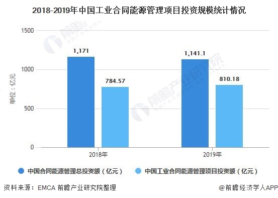 經(jīng)推算后得出2018年中國工業(yè)合同能源管理項(xiàng)目投資額為784.57億元;2019年中國工業(yè)合同能源管理項(xiàng)目投資額為810.18億元,在節(jié)能行業(yè)總投資額有所下降的情況下,工業(yè)節(jié)能服務(wù)產(chǎn)業(yè)仍然同比上年增長3.26%。