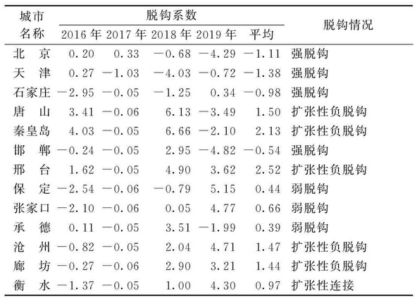 表2 京津冀城市群經(jīng)濟增長與碳排放脫鉤結(jié)果
